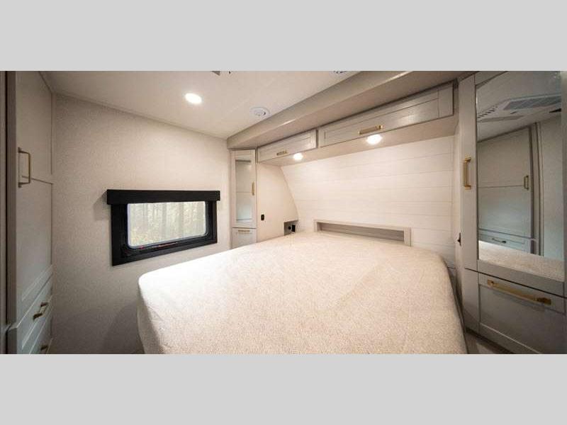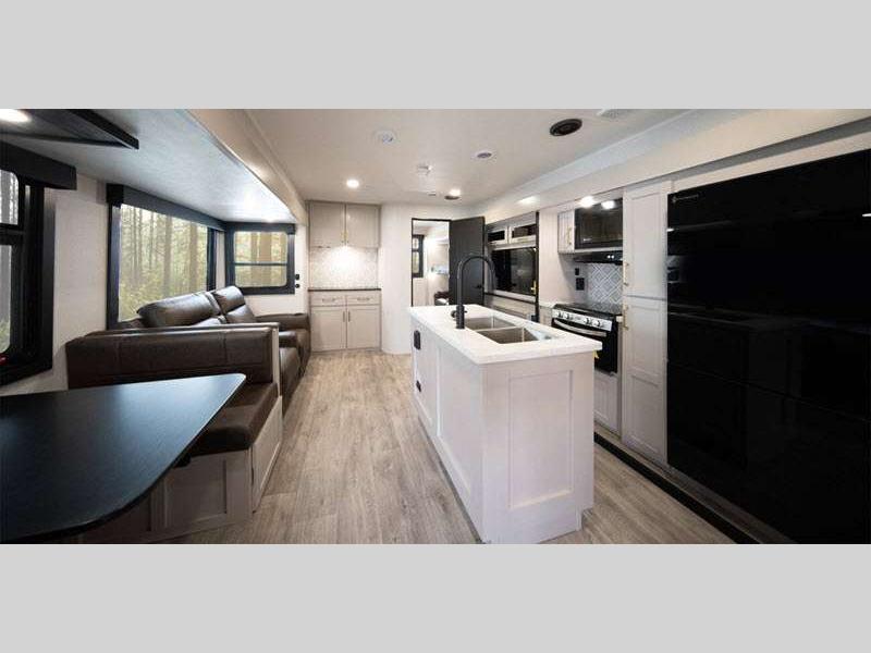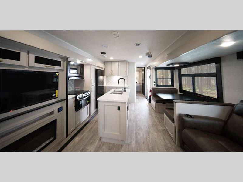 Sleeps 4 Slides 1 Length 30 ft 1 in Ext Width 8 ft 1 in Ext Height 11 ft 8 in Int Height 7 ft Interior Color Dune Gray Hitch Weight 840 lbs GVWR 9400 lbs Dry Weight 7055 lbs Cargo Capacity 2150 lbs Fresh Water Capacity 52 gals Grey Water Capacity 74 gals Black Water Capacity 37 gals Furnace BTU 35000 btu Available Beds Olympic Refrigerator Type 12V Refrigerator Size 10 cu ft Cooktop Burners 3 Shower Size 30" x 48" Number of Awnings 1 LP Tank Capacity 30 Lbs. Water Heater Type On Demand Tankless AC BTU 15000 btu TV Info 4K Ultra LED HD Smart TV Awning Info 16' Electric Axle Count 2 Number of LP Tanks 2 Shower Type Standard Electrical Service 50 amp Solar Wattage 200 watts Similar Floorplans