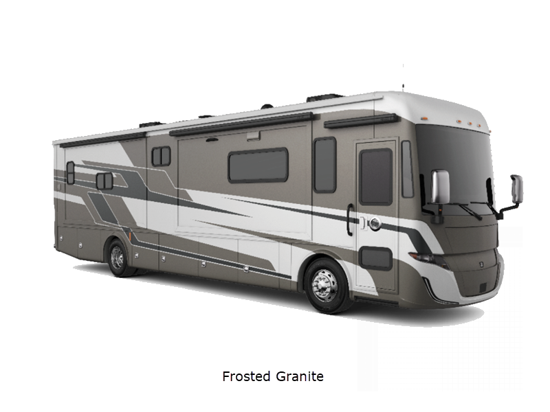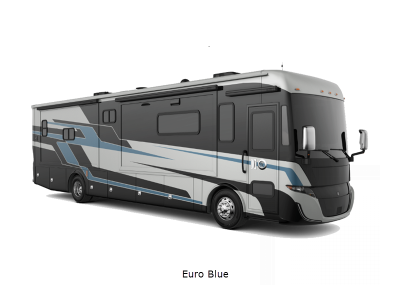 Sleeps 4 Slides 3 Length 39 ft 6 in Ext Width 8 ft 5 in Ext Height 12 ft 10 in Int Height 7 ft Interior Color Desert Retreat, Lunar Lite Exterior Color Scarlet Thunder, Nasa, Frosted Granite, Euro Blue Hitch Weight 5000 lbs GVWR 29800 lbs Fresh Water Capacity 70 gals Grey Water Capacity 65 gals Black Water Capacity 65 gals Tire Size 255/80R 22.5 Furnace BTU 65000 btu Generator 8.0 kW Cummins Onan Diesel Quiet Series Fuel Type Diesel Engine Cummins B6.7 Chassis Freightliner XCS Straight Rail Rear Engine Diesel Horsepower 340 hp Fuel Capacity 90 gals Wheelbase 252 in Available Beds King Torque 700 ft-lb Refrigerator Type Stainless Steel Residential with Bottom Freezer Refrigerator Size 18 cu ft Convection Cooking Yes Cooktop Burners 3 Shower Size 28.5" x 40.5" Axle Weight Front 10800 lbs Axle Weight Rear 19000 lbs LP Tank Capacity 20.3 gals. Water Heater Type Truma AquaGo Comfort Instant AC BTU 30000 btu Basement Storage 118 cu. ft. TV Info LR TV, BR TV Awning Info Side-Mounted Power w/Integrated LED Lighting Washer/Dryer Available Yes Gross Combined Weight 33000 lbs Shower Type Standard Electrical Service 50 amp Similar Floorplans