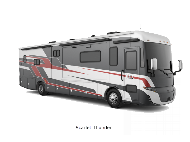 Sleeps 5 Slides 4 Length 35 ft 2 in Ext Width 8 ft 5 in Ext Height 12 ft 10 in Int Height 7 ft Interior Color Desert Retreat, Lunar Lite Exterior Color Scarlet Thunder, Nasa, Frosted Granite, Euro Blue Hitch Weight 5000 lbs GVWR 29800 lbs Fresh Water Capacity 70 gals Grey Water Capacity 50 gals Black Water Capacity 50 gals Tire Size 255/70R 22.5 Furnace BTU 65000 btu Generator 8.0 kW Cummins Onan Diesel Quiet Series Fuel Type Diesel Engine Cummins B6.7 Chassis Freightliner XCS Straight Rail Rear Engine Diesel Horsepower 340 hp Fuel Capacity 90 gals Wheelbase 198 in Available Beds King Torque 700 ft-lb Refrigerator Type Stainless Steel Residential with Bottom Freezer Refrigerator Size 18 cu ft Convection Cooking Yes Cooktop Burners 3 Shower Size 28.5" x 40.5" Number of Awnings 1 Axle Weight Front 10800 lbs Axle Weight Rear 19000 lbs LP Tank Capacity 20.3 gals. Water Heater Type Truma AquaGo Comfort Instant AC BTU 30000 btu Basement Storage 71 cu. ft. TV Info LR TV, BR TV Awning Info Side-Mounted Power w/Integrated LED Lighting Washer/Dryer Available Yes Gross Combined Weight 33000 lbs Shower Type Standard Electrical Service 50 amp Similar Floorplans