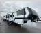 You're going to love every minute spent in this spacious fifth wheel that can sleep four. There is an inviting rear living area with a 72" tri-fold sofa and theater seating across from the televator and fireplace. The chef of your group can whip up dinner on the three burner cooktop or in the 30" residential microwave, and there is a 16 cu. ft. refrigerator that even opens when with the slide out is in. You will also enjoy the kitchen island with a farmhouse sink and roller cover, dual trash bins with a Stow N' Go paper towel holder, plus convenient dog bowls for your furry friends. You can store all your paper goods and snacks in the 84" pantry with adjustable shelving, and there is a hutch for nice dishes plus shoe storage in this model as well. Head to the front master bedroom where you'll find a queen bed with a TV, a large slide out with a wardrobe with drawers, plus a spacious bath.