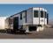 Unwind and refresh in this serene space of the rear bathroom, featuring dual sinks and a spacious linen closet for added convenience and storage. Drift off to sleep surrounded by peaceful surroundings in the private bedroom, complete with a plush king bed, an elegant dresser, and a stunning TV mounted above. The kitchen is a culinary haven, equipped with ample overhead cabinets, a convenient microwave, and a spacious refrigerator. The pantry and cabinets offer ample storage for your favorite ingredients and snacks. Plus, you can enjoy meals with loved ones at the table with swivel chairs! Also, the coat closet and half bath add a touch of practicality, making this fifth wheel perfect for everyday living or extended adventures. The front living room is a vibrant gathering space, featuring a comfortable sectional sofa and a cozy fireplace so you can snuggle up and enjoy quality time with family and friends while watching your favorite shows on the TV!