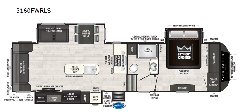 Keystone Sprinter fifth wheel 3160FWRLS highlights: